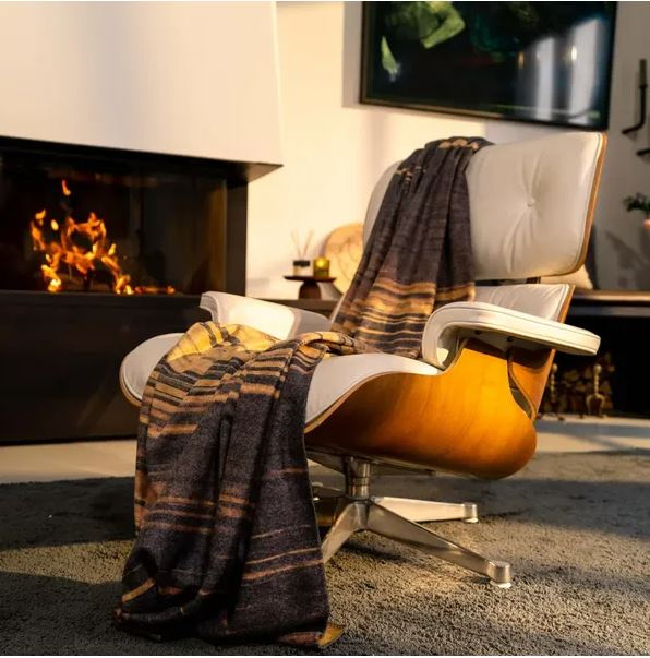 Voor de koudere herfst en winter avonden heeft Kayori dit heerlijk zachte plaid met warme streep print op grijs blauwe ondertoon en een mooie goudkleurige binnenkant. Dit plaid gemaakt van 40% bamboo/vezel 60% kunstvezel. Door de mix voelt het plaid extreem zacht, knuffelig en warm aan. Fijn voor buiten op het terras, binnen op de bank terwijl je een boek leest om onder te kruipen. Met extra lengte om de voeten goed te bedekken en warm te houden.